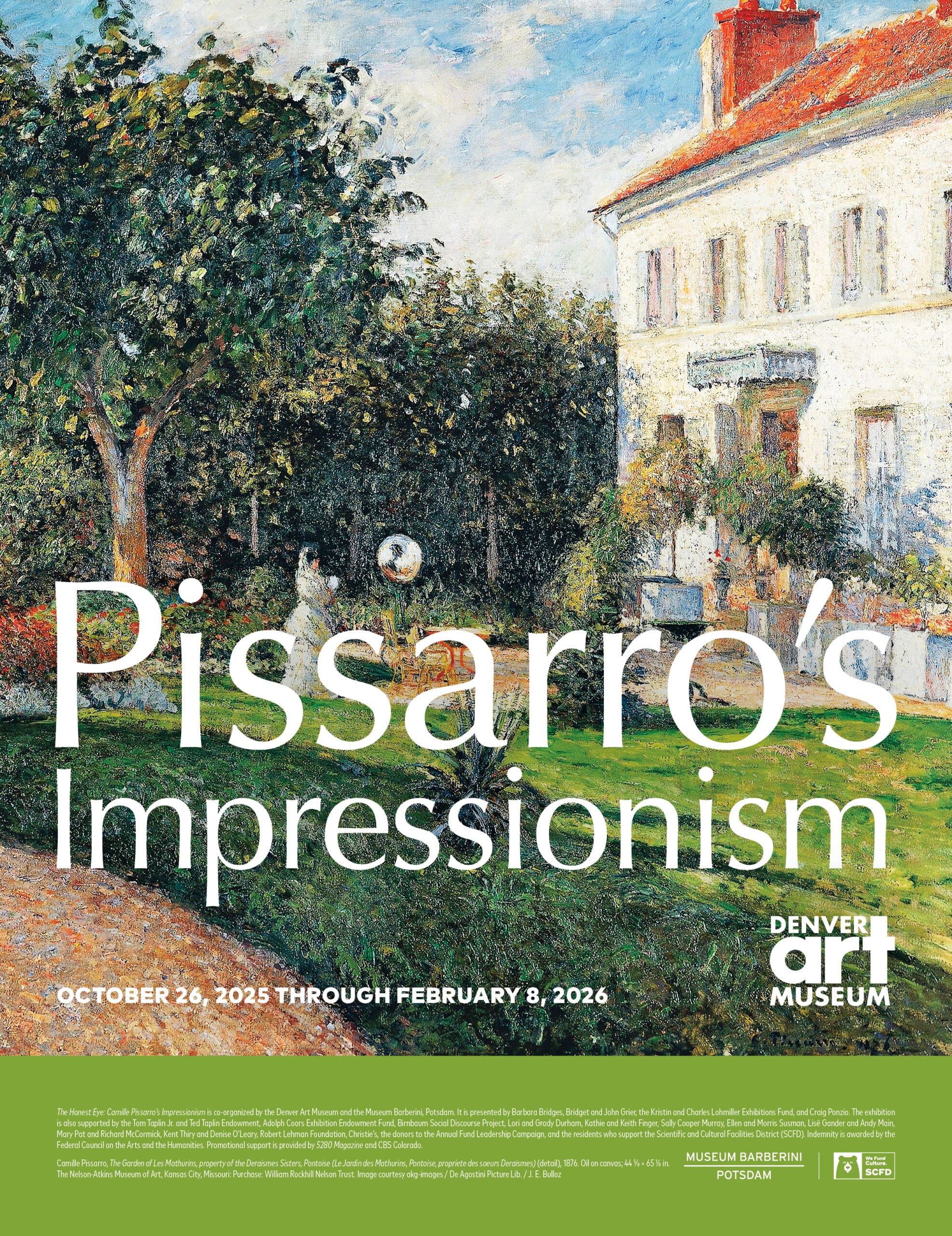 Bringing together more than 100 paintings from nearly 50 international museums and private collections, alongside six works from the Denver Art Museum’s holdings, the exhibition will feature landscapes, cityscapes, still life, and figure paintings, showcasing the breadth of Pissarro’s oeuvre and the various influences that shaped his practice as he responded to the social and political environment of the day. Co-organized with the Museum Barberini in Potsdam, Germany. Denver is the only U.S. stop for this show. The two special docent led tours of the DAM exhibit for MAA! members will be conducted by Ellen Reynolds, a DAM docent for over 20 years.